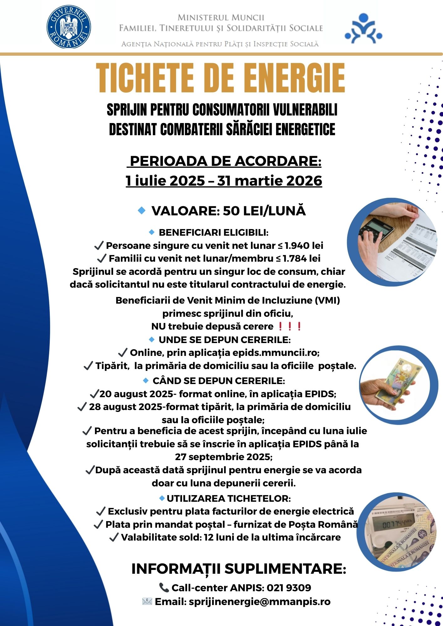 Acordare sprijin financiar destinat consumatorilor casnici de energie electrica aflati in situatia de saracie energetica
